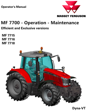 Original Factory Operation & Maintenance Manual for the Massey Ferguson MF7700 Dyna-VT Series Efficient and Exclusive Versions Tractors.