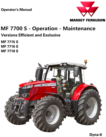 Original Factory Operation & Maintenance Manual for the Massey Ferguson MF7700S Dyna-6 Series Efficient and Exclusive Versions Tractors.