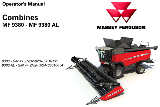 Original Factory Operator’s Manual for the Massey Ferguson MF9380 – MF9380 AL Combines.