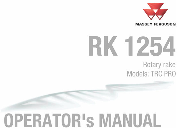 This manual offers full information you need for operate and maintain your Massey Ferguson RK1254 TRC-PRO Rotary Rake.