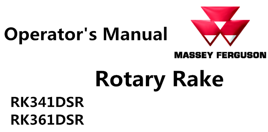 This manual offers full information you need for operate and maintain your Massey Ferguson RK341DSR/RK361DSR Rotary Rake.