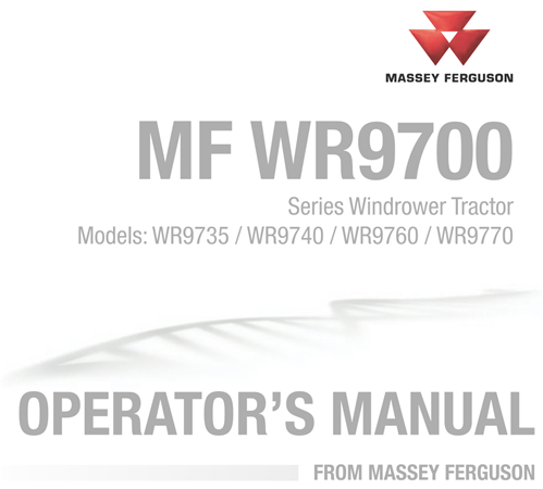 Original Factory Operator’s Manual for the Massey Ferguson WR9700 Series Windrower Tractor.