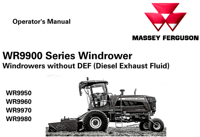 Original Factory Operator’s Manual for the Massey Ferguson WR9900 Series Windrower.