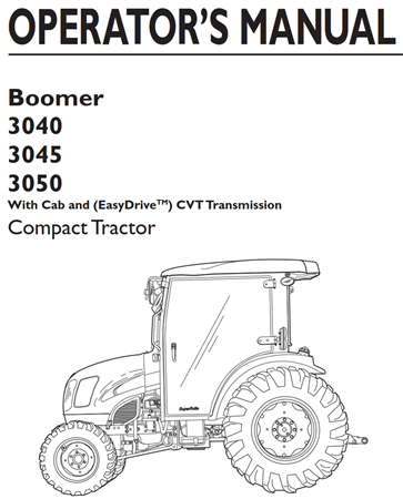 Original Factory Operator’s Manual for the New Holland Boomer 3040, 3045, 3050 Compact Tractor – With Cab and (EasyDriveTM) CVT Transmission.