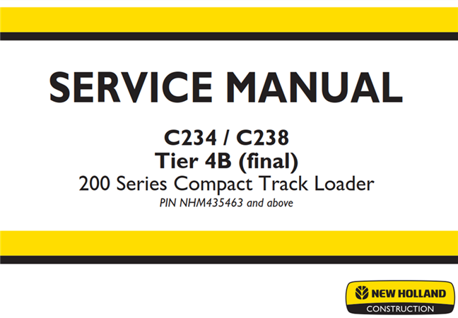 Original Factory Service Repair Manual for the New Holland C234 / C238 Tier 4B (final) Compact Track Loader.
