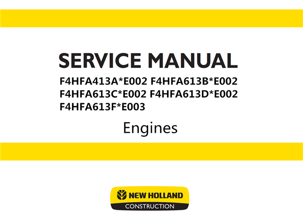 Original Factory Service Repair Manual for the New Holland Engines – F4HFA413A*E002, F4HFA613B*E002, F4HFA613C*E002, F4HFA613D*E002, F4HFA613F*E003.