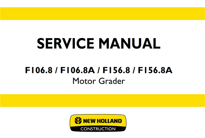 Original Factory Service Repair Manual for the New Holland F106.8 / F106.8A / F156.8 / F156.8A Motor Grader.