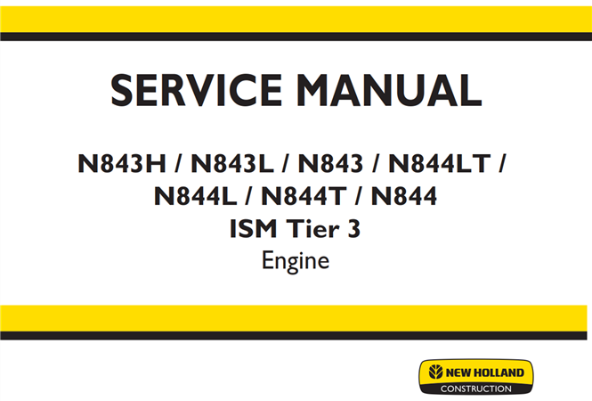Original Factory Service Repair Manual for the New Holland N843H / N843L / N843 / N844LT / N844L / N844T / N844 ISM Tier 3 Engine.