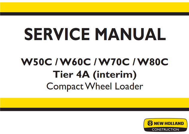 Original Factory Service Repair Manual for the New Holland W50C / W60C / W70C / W80C Tier 4A (interim) Compact Wheel Loader.