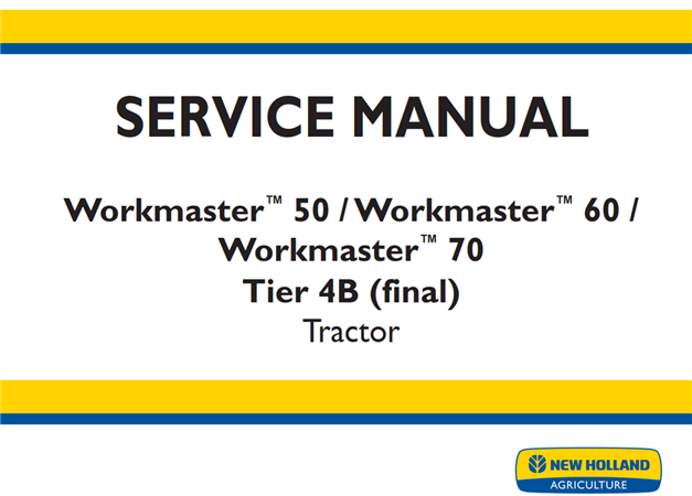 Original Factory Service Repair Manual for the New Holland Workmaster 50 / Workmaster 60 / Workmaster 70 Tier 4B (final) Tractor.
