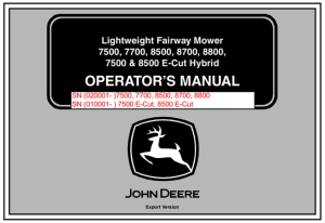 John Deere 7500, 7700, 8500, 8700, 8800, 7500 & 8500 E-Cut Hybrid Lightweight Fairway Mower Operator’s Manual (Export Version) #1