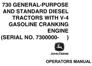 John Deere 730 General-Purpose and Standard Diesel Tractors With V-4 Gasoline Cranking Engine Operator’s Manual (Serial No.7300000-up)