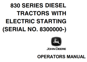 John Deere 830 Series Diesel Tractors With Electric Starting Operator’s Manual (Serial No.8300000-)
