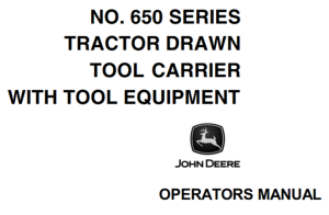 John Deere No.650 Series Tractor Drawn Tool Carrier With Tool Equipment Operator’s Manual