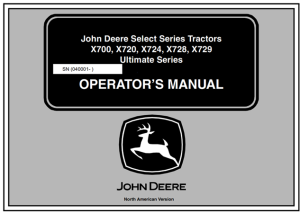John Deere Select Series Tractors X700, X720, X724, X728, X729 Ultimate Series Operator’s Manual (North American Version) (Serial No.040001-)