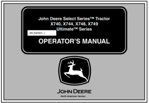 John Deere Select Series Tractor X740, X744, X748, X749 Ultimate Series Operator’s Manual (North American Version) (Serial No.040001-)