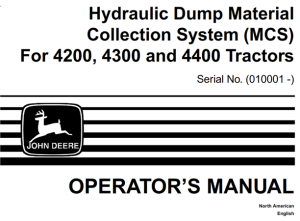 John Deere Hydraulic Dump Material Collection System (MCS) For 4200, 4300, 4400 Tractors Operator’s Manual (Serial No.010001-)
