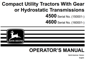 John Deere 4500, 4600 Compact Utility Tractors Gear or Hydrostatic Transmissions Operator’s Manual (North American Version)