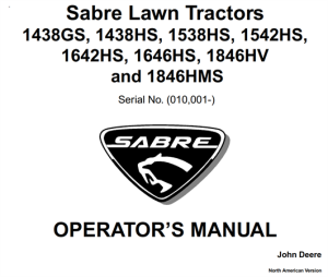 John Deere 1438GS, 1438HS, 1538HS, 1542HS, 1642HS, 1646HS, 1846HV, 1846HMS Sabre Lawn Tractors Operator’s Manual (North American Version)