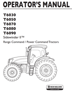 New Holland T6030, T6050, T6070, T6080, T6090 Sidewinder II Range Command / Power Command Tractors Operator’s Manual