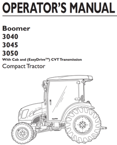 New Holland Boomer 3040, 3045, 3050 Compact Tractor – With Cab and (EasyDriveTM) CVT Transmission Operator’s Manual