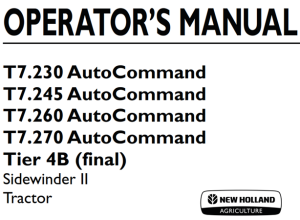 New Holland T7.230 Auto Command, T7.245 Auto Command, T7.260 Auto Command, T7.270 Auto Command Tier 4B (final) Sidewinder II Tractor Operator’s Manual