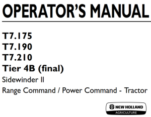 New Holland T7.175, T7.190, T7.210 Tier 4B (final) Sidewinder II Range Command / Power Command – Tractor Operator’s Manual