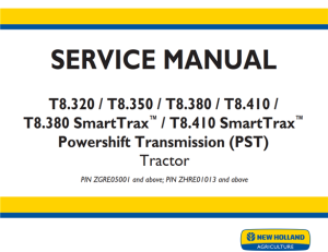 New Holland T8.320 / T8.350 / T8.380 / T8.410 / T8.380 SmartTrax / T8.410 SmartTrax Powershift Transmission (PST) Tractor Service Repair Manual (PIN ZGRE05001 and above)