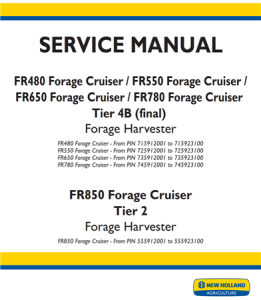 New Holland FR480 Forage Cruiser / FR550 Forage Cruiser / FR650 Forage Cruiser / FR780 Forage Cruiser Tier 4B (final), FR850 Forage Cruiser Tier 2 Forage Harvester Service Repair Manual