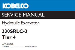 Kobelco 230SRLC-3 Tier 4 Hydraulic Excavator Service Repair Manual